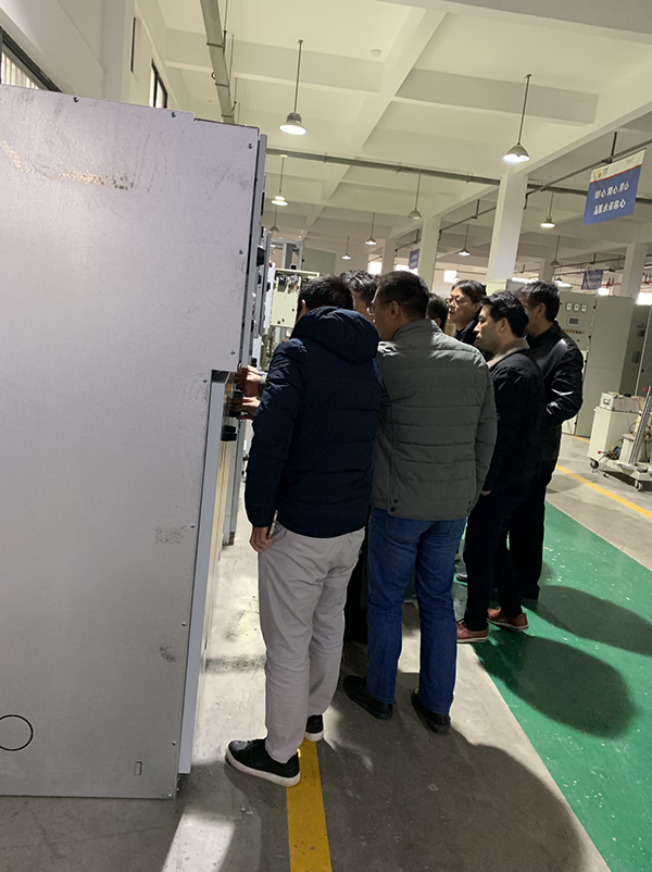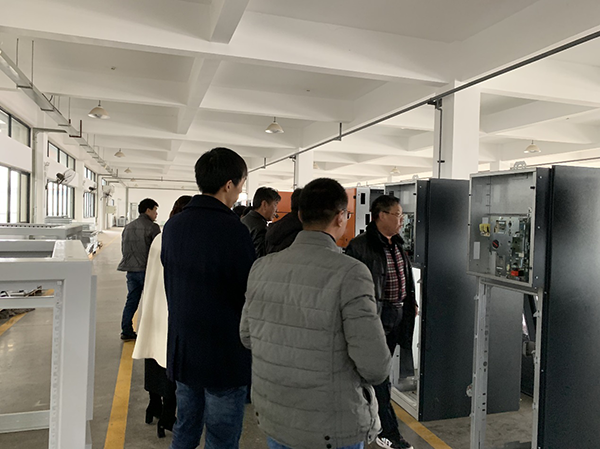 2019年11月28日,湖南宜章電力李總、謝總一行來武漢考察,一行人參觀了公司廠房,然后參觀了本公司的生產車間,客戶對于本公司生產的系列高低壓開關柜特別感興趣,詢問了很多專業問題,本公司劉總、王總、楊經理和杜經理對于客戶提出的問題進行了細致的解答,參觀完之后,對于客戶現場的問題展開了技術研討,解答了客戶疑惑,同時客戶明確表示以后會長期和本公司繼續合作,對于本公司的技術和服務給予了高度的肯定。